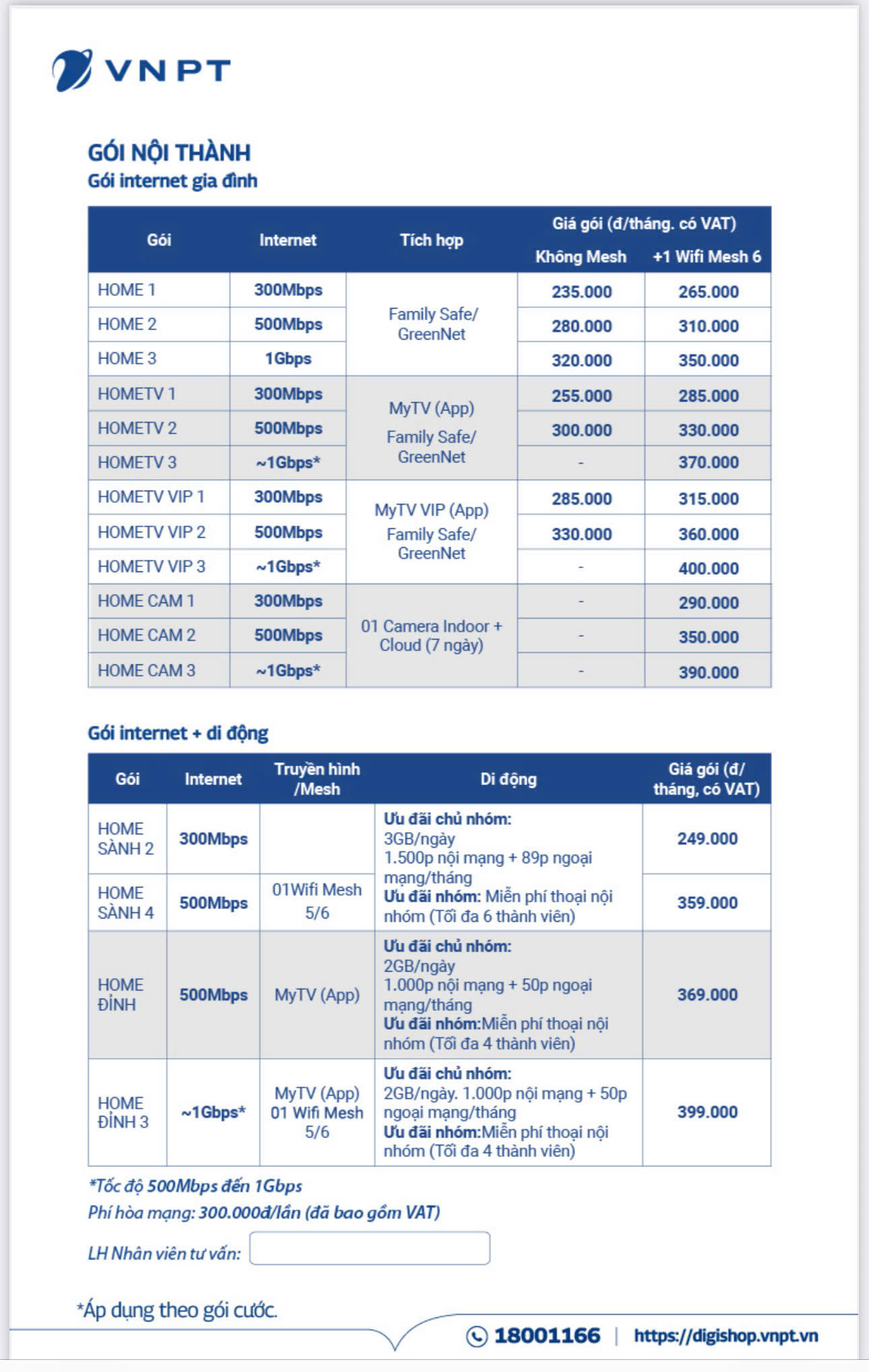 IV/ TỔNG HỢP CÁC GÓI CƯỚC INTERNET WIFI KH CÁ NHÂN – HỘ GIA ĐÌNH